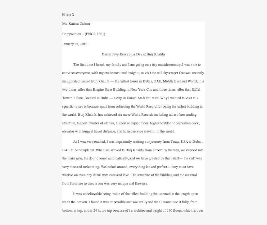Descriptive Essay Akbar Doc Sumaira Akbar Engl 1301 Descriptive Essay Prominent Burj Khalifa We Live In Such A Wonderful Environment That Is Full Of Course Hero